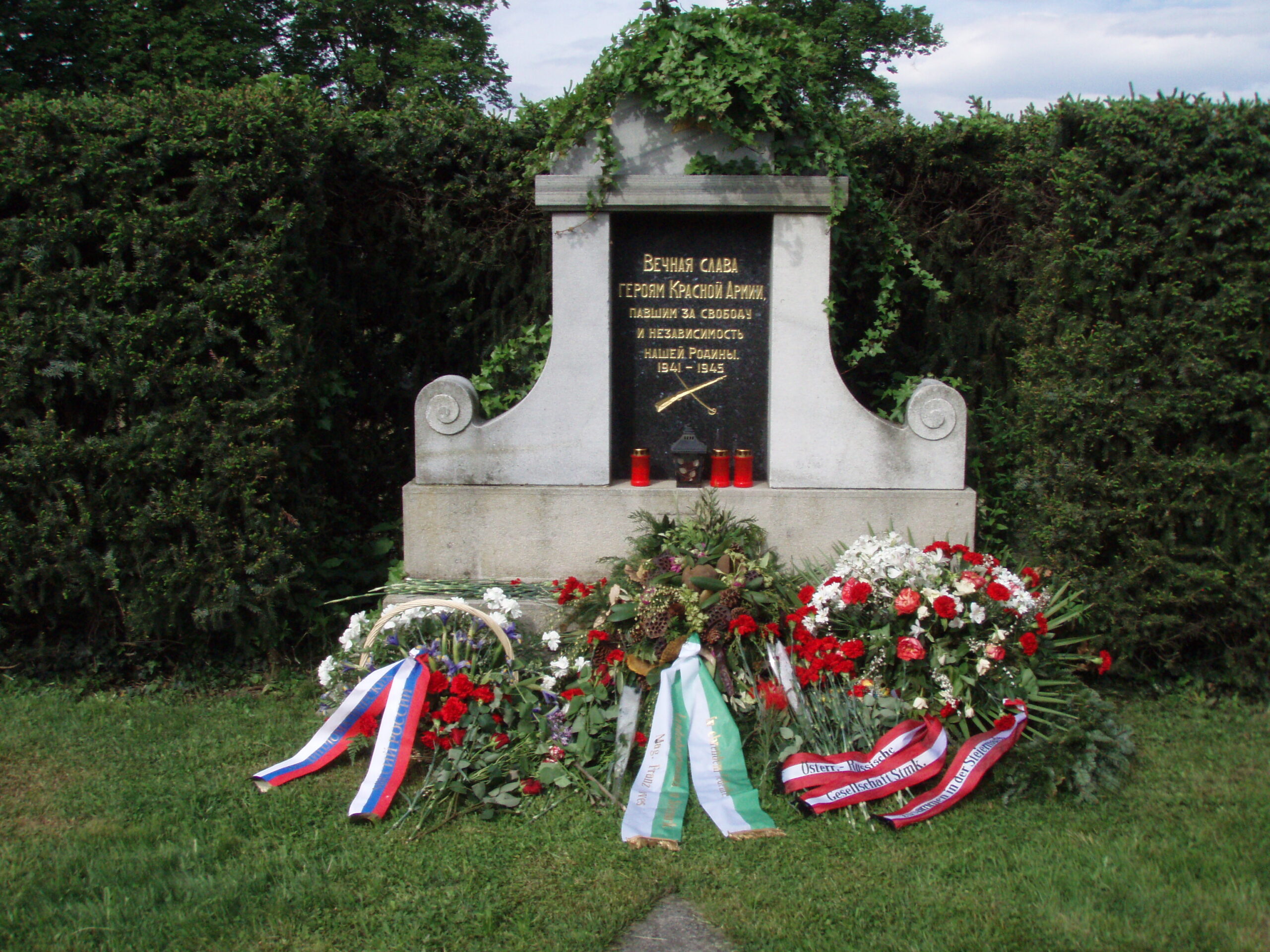 Die Österreichisch – Russische Gesellschaft organisierte gemeinsam mit dem Verein “Zusammen in der Steiermark” am 9. Mai 2010 eine Gedenkveranstaltung bei der sowjetischen Grabanlage am Grazer Zentralfriedhof.